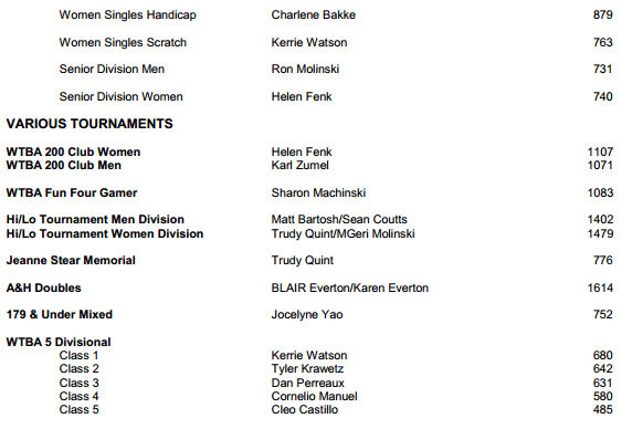 Tournament Results (WTBA/MBA)